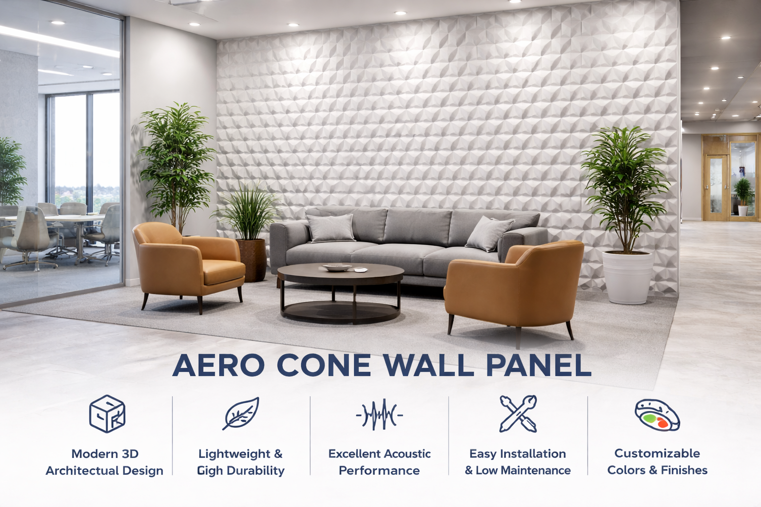 Designed to reduce noise and echo, Aero Cone wall panels help improve sound quality in offices, auditoriums, studios, and commercial spaces.