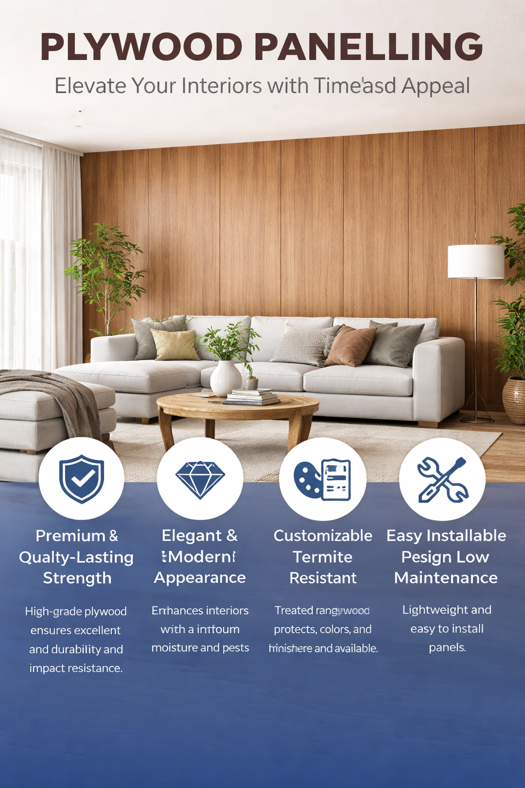 Specially treated plywood protects against moisture, humidity, and termite damage, ensuring lasting beauty and safety.