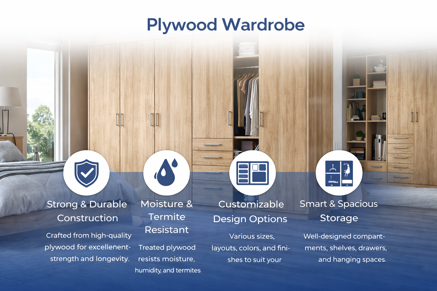 Treated plywood resists moisture, humidity, and termites, protecting your wardrobe and clothing over time.