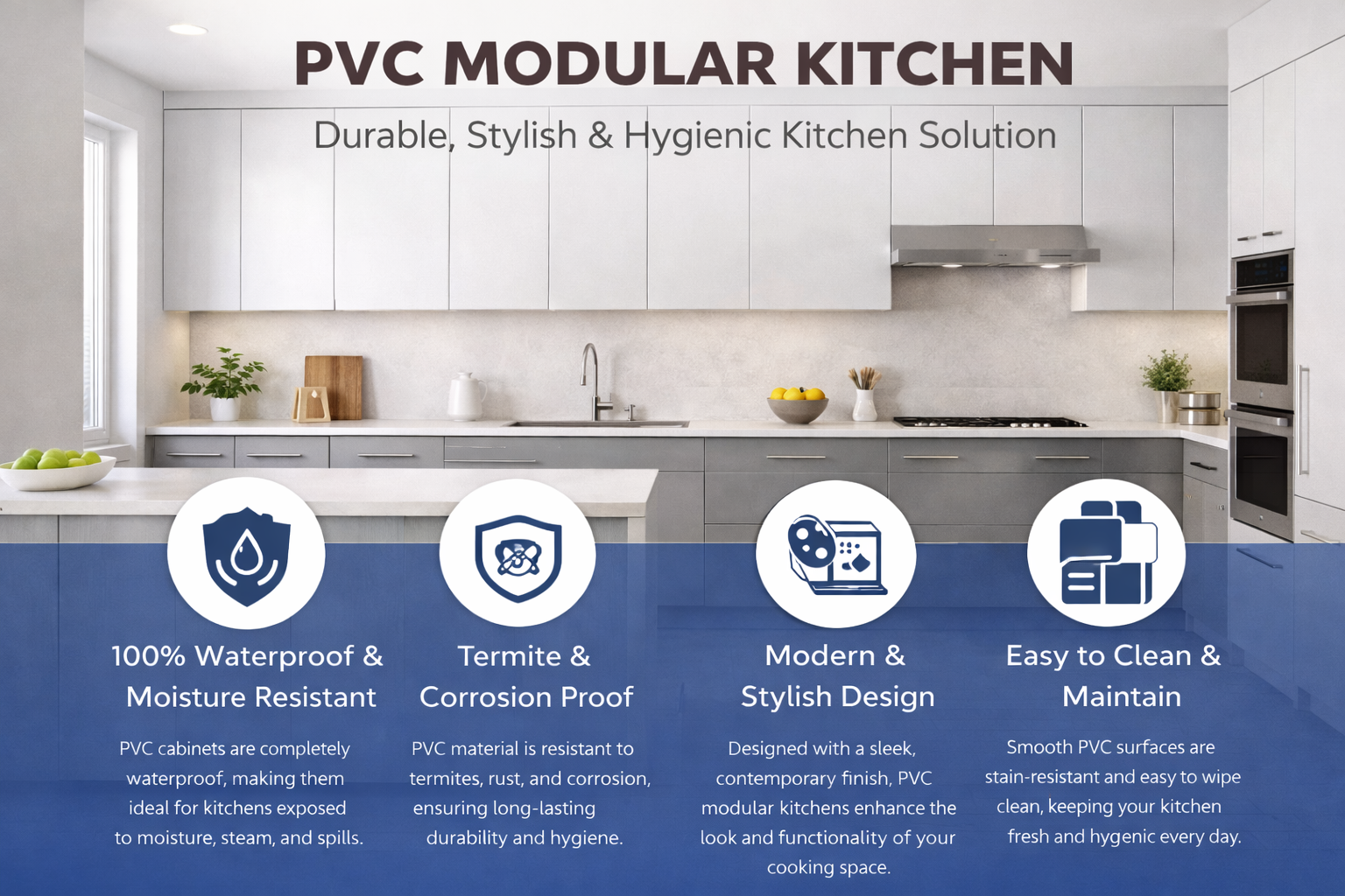 Designed with a sleek, contemporary finish, PVC modular kitchens enhance the look and functionality of your cooking space.