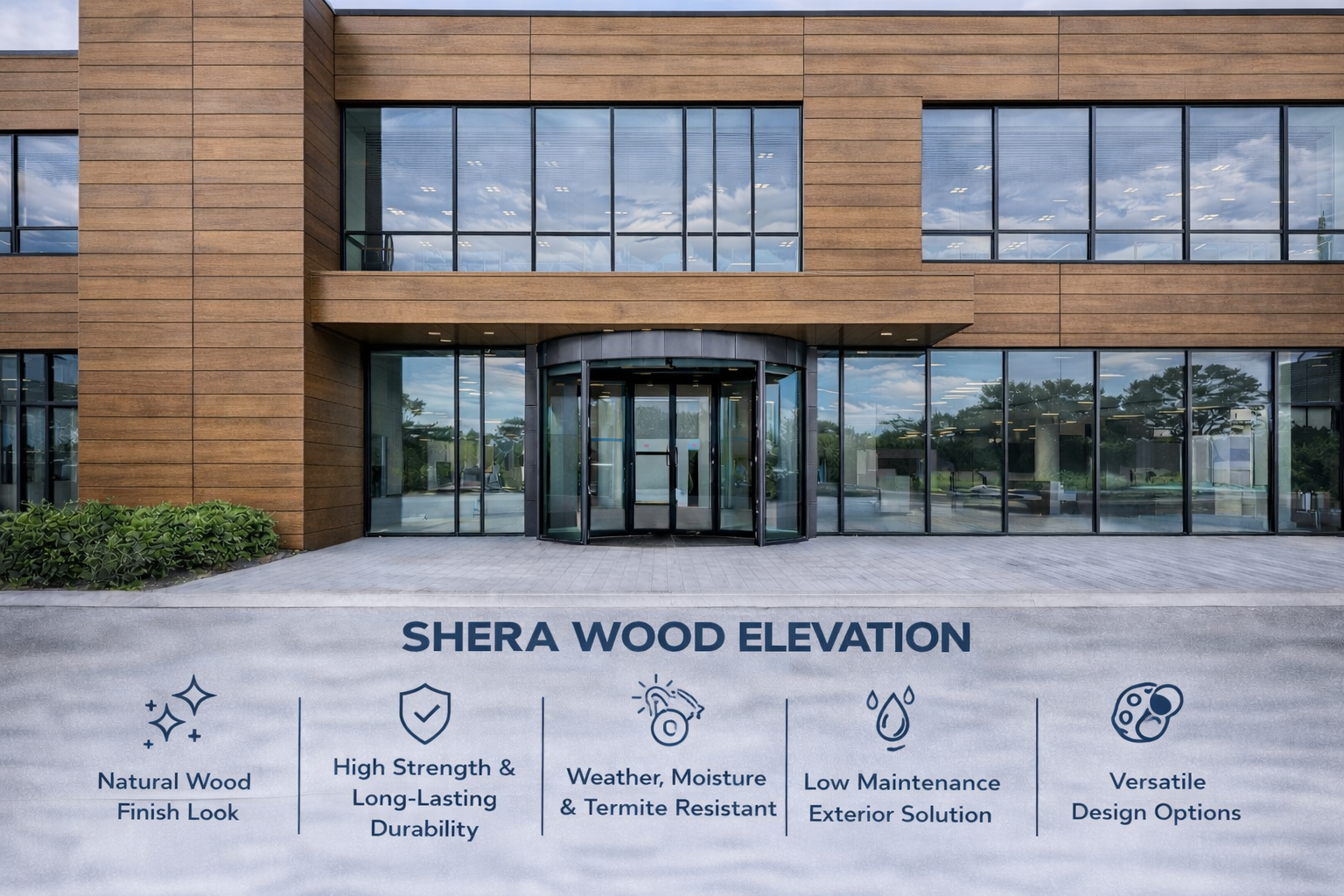 Made from fiber cement technology, Shera Wood panels are strong, impact-resistant, and suitable for long-term outdoor use.